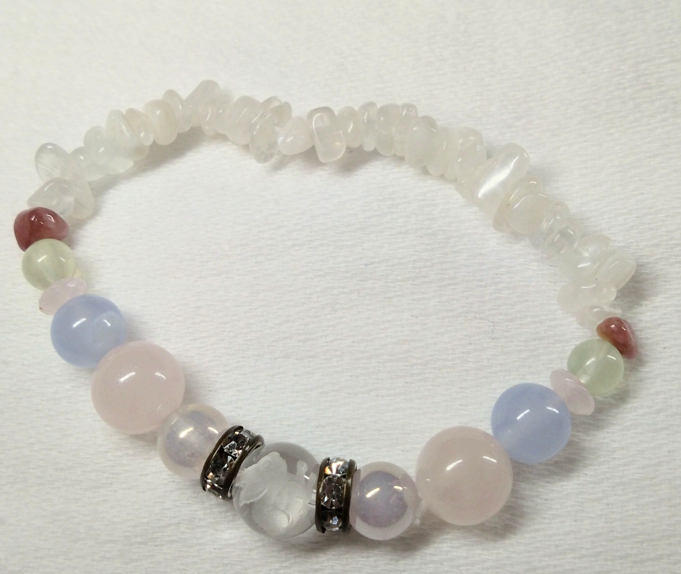 水晶、ローズクォーツ、ブルーレースアゲート、水晶さざれを使用